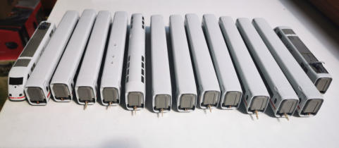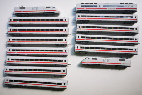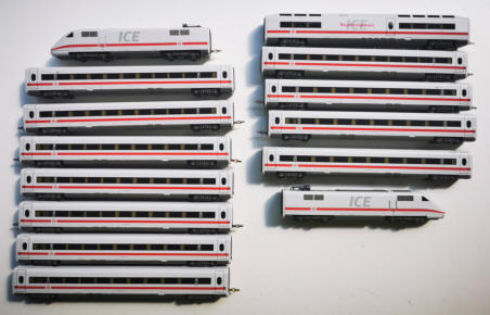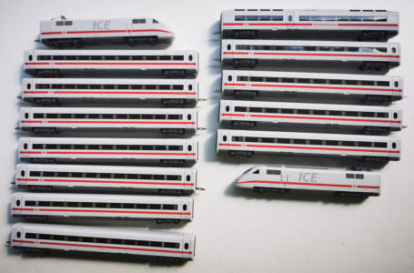Ein 14-teiliger ICE aus der aktuellsten Lieferserie von TILLIG. Vorbildgerecht aus den verfügbaren Waggons zusammengestellt. Beide Triebköpfe inklusive Decoder.