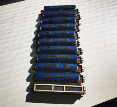 Ein Set aus insgesamt 11 Waggons des Typs Res von TILLIG. Jeder Waggon ist beladen. Pro Waggon hätte ich gern 25,00 €